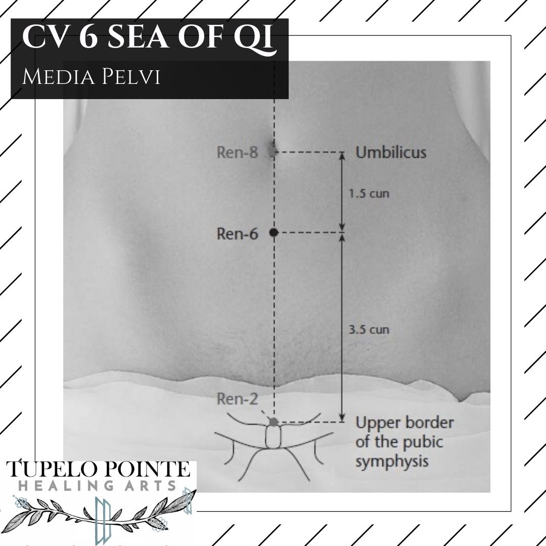 CV6 sits just below the umbilicus and can help harness the inherent and dormant energy of the body. This is a great point for constipation or indigestion that may occur during the seasonal transition. It also corresponds with the Fascial Manipulation line Medial Pelvi that corresponds with midline and balance issues. (1)